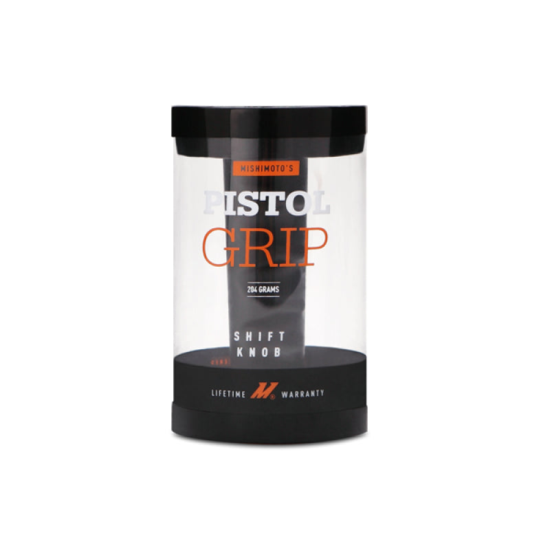 Grip and rip on your shifter in comfort. This Mishimoto pistol grip shifter is ergonomically designed for maximum comfort. Unlike many other pistol grip shift knobs this one actually fits to your fingers. CNC-machined from billet 6061 aluminum, this knob weighs in at 204g for a precise and accurate shifter feel. Four plastic inserts allow for fitment on a wide variety of vehicles.